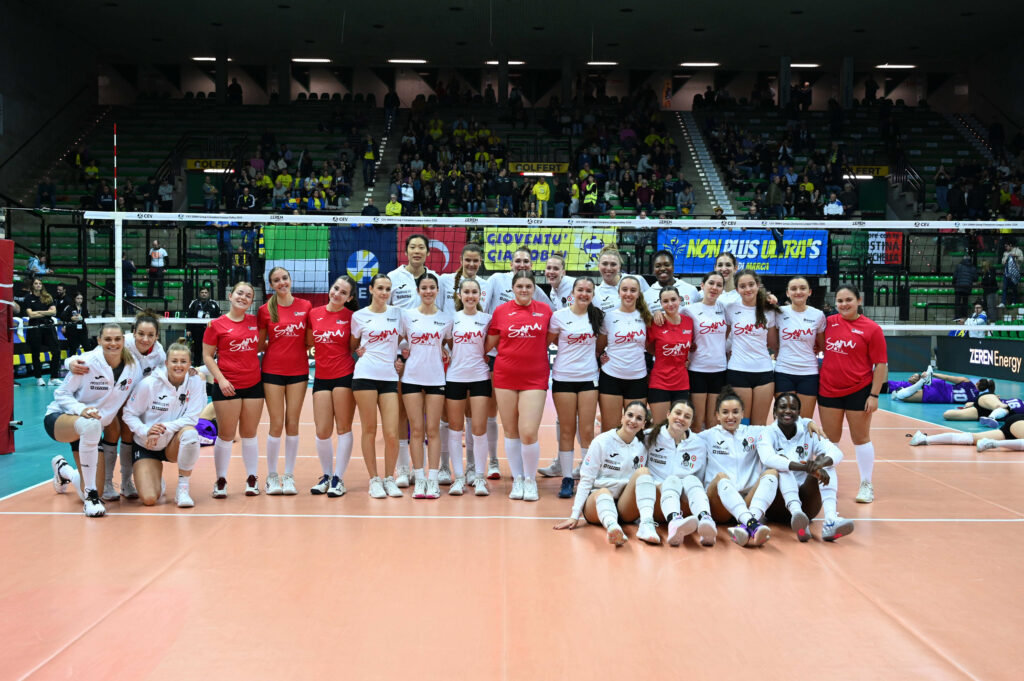 A. Carraro Prosecco DOC Imoco Conegliano: Gabi 21, Zhu 6, Scognamillo ne, Ewert, Lubian 4, De Gennaro, Haak 29, Munarini ne, Wolosz, Adigwe 2, Daalderop 17, Chirichella ne, Fahr 12, Sillah. All. Santarelli