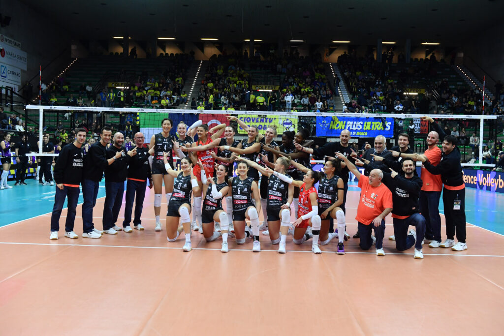Fahr sale in cattedra con 3 punti di fila (4-4). Daalderop aiuta le Pantere a rimanere a contatto (5-6), Ewert e Adigwe entrano per dare slancio nella rimonta, la giovane opposta mette un timbro (9-11), Sillah entra per il servizio, Haak spegne tre matchpoint (14-14, l’opposta finisce con 29 punti sul tabellino): delirio al Palaverde, le Pantere hanno fiato e cuore per completare la rimonta epica, si chiude sul 20-18 e un 3-2 leggendario.