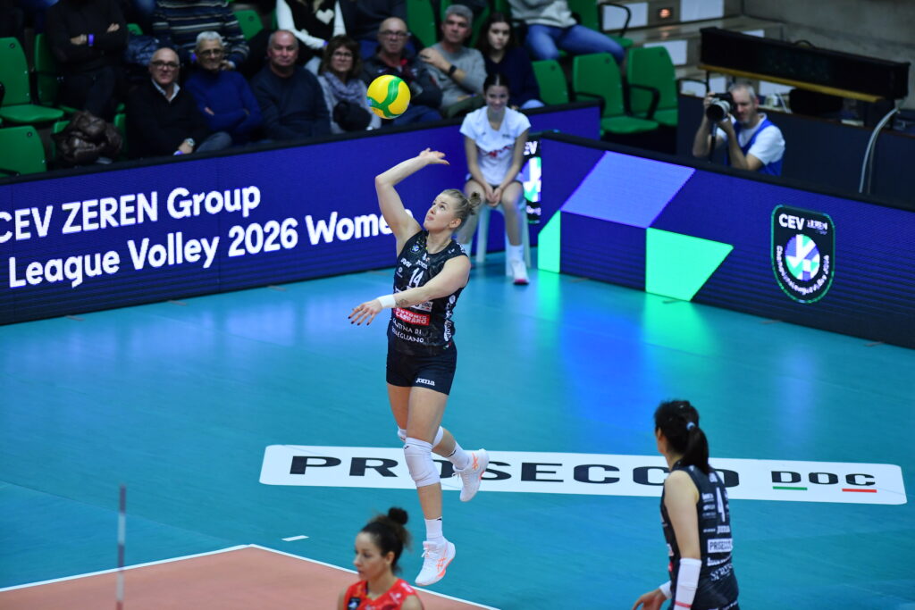 Daalderop regala il primo hurrà con il muro del 4-3, è sempre dell’olandese il primo break (7-5). La schiacciatrice in maglia numero 16 semina 8 punti con 1 muro nel terzo set, l’impatto di Nika ha in copertina 17 punti e 2 muri. È Haak a far dipanare le nubi (13-13), da un servizio affilato di Lubian le Pantere tornano avanti con il primo tempo di Fahr a chiudere l’azione (18-17). Adigwe scarica una folgore dal servizio (20-19), Ankara raggiunge e supera l’A.Carraro in coda, chiudendo 23-25 avanti.