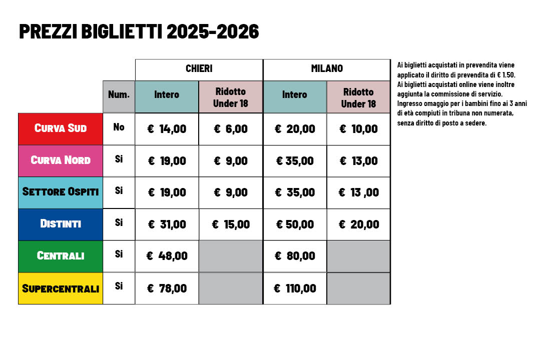 - Tutti i biglietti sono nominativi. In caso di necessità di cambio nominativo, compilare il modulo per la cessione del biglietto, da consegnare agli steward al momento del controllo accessi;
