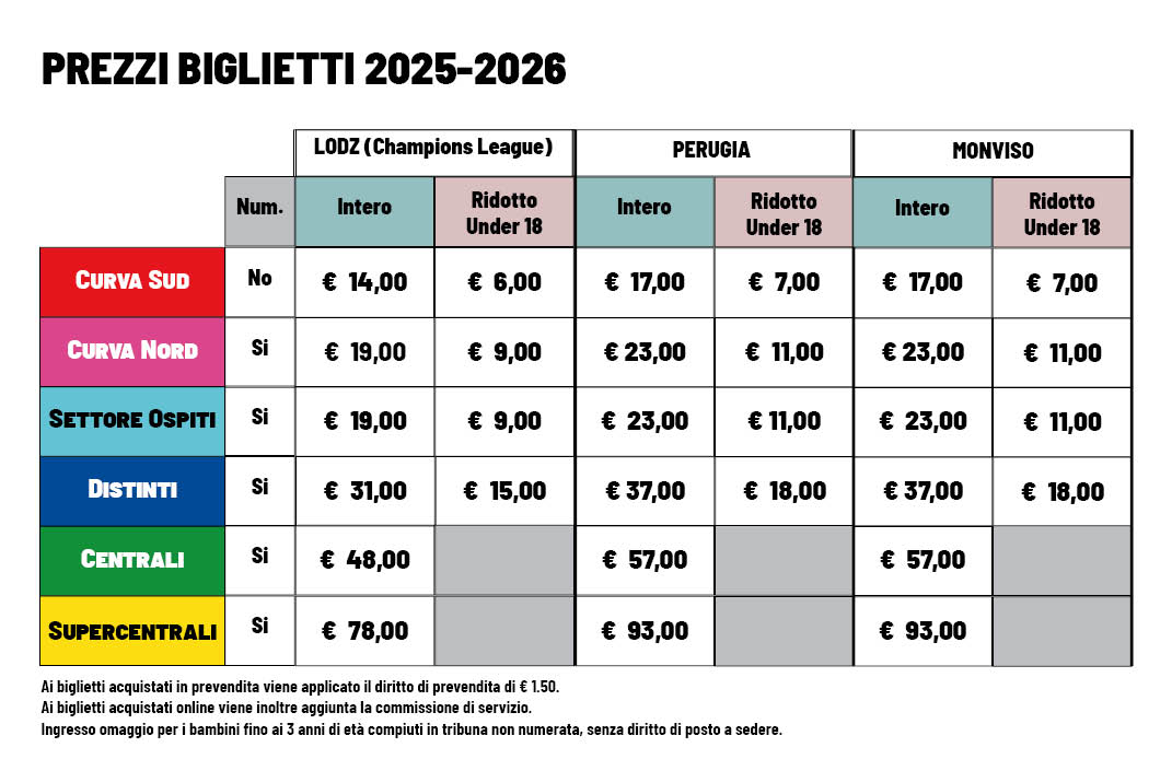 - Il giorno della partita, a partire da 90 minuti prima dell’inizio della gara, presso le casse esterne del Palaverde, previa disponibilità.