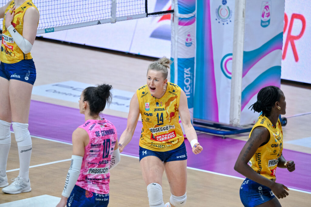 Prosecco DOC A. Carraro Imoco Conegliano: Scognamillo, Lubian 10, De Gennaro, Haak 17, Wolosz, Daalderop 13, Chirichella 5, Sillah 9, Gabi ne, Zhu ne, Ewert ne, Munarini ne, Adigwe ne, Fahr ne. All. Santarelli
