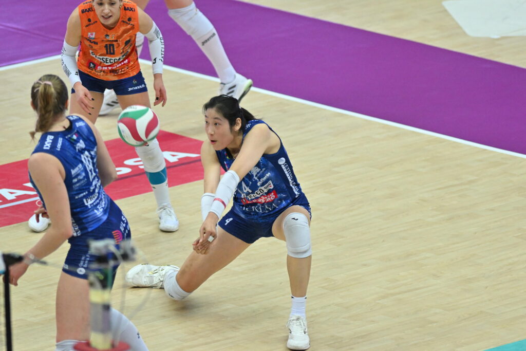 Prosecco DOC A.Carraro Imoco Conegliano: Gabi 2, Zhu 20, Scognamillo, Ewert ne, Lubian 9, De Gennaro, Haak 35, Wolosz, Adigwe ne, Daalderop, Chirichella ne, Fahr 9, Sillah 8. All. Santarelli