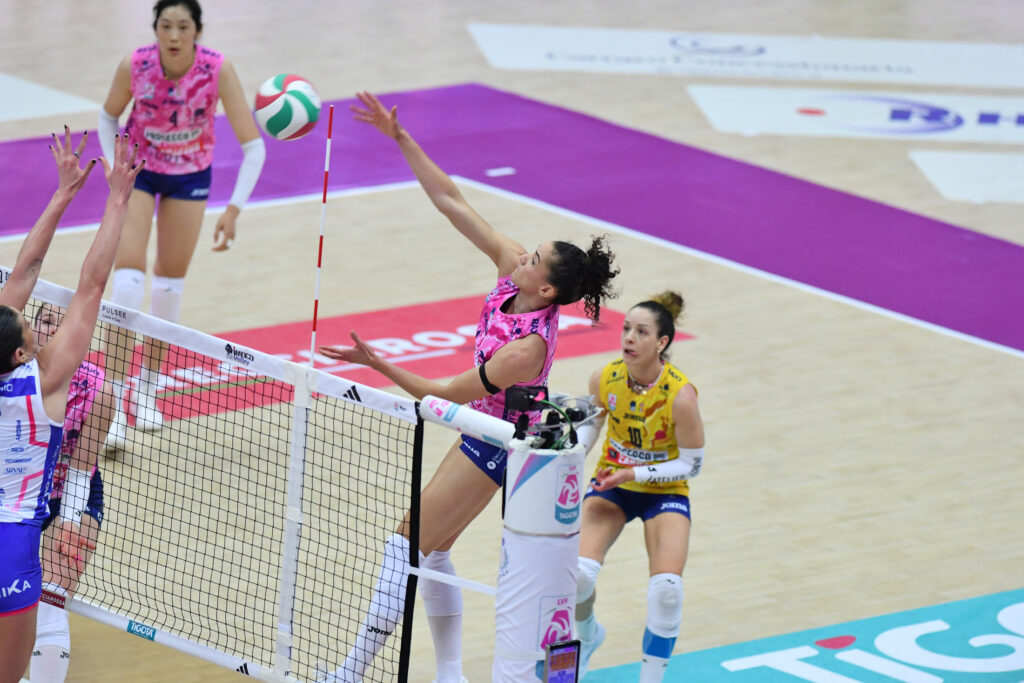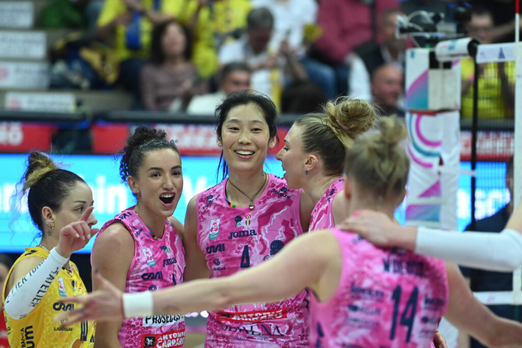 Prosecco DOC A.Carraro Imoco Conegliano: Gabi 20, Zhu 18, Scognamillo, Ewert, Lubian ne, De Gennaro, Haak 28, Munarini ne, Wolosz 3, Adigwe 1, Daalderop, Chirichella 8, Fahr 9 , Sillah ne. All. Santarelli