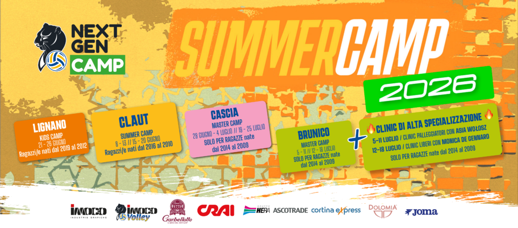 Sono stati presentati oggi al Palaverde, prima della gara tra Prosecco DOC A.Carraro Imoco Conegliano e San Giovanni in Marignano, date e località degli Imoco Next Gen Summer Camp 2026. Alla presenza del presidente del club Piero Garbellotto, del Direttore Sviluppo e Responsabile del Settore Giovanile Silvia Giovanardi, sono state messe in luce le grandi novità dell’estate che verrà. Per la prima volta i Next Gen Camp vanno oltremanica con il Soggiorno Studio Internazionale a Dublino con Vivimondo, ospiti le campionesse Cristina Chirichella e Alessia Gennari nel prestigioso University College di Dublino. Ma le campionesse gialloblù sono ancora protagoniste nel Master Camp di Brunico, in cui verranno introdotti due Clinic di altissima specializzazione per i palleggiatori, con “maestra” d’eccezione Asia Wolosz, e per i liberi, con riferimento l’inimitabile Monica De Gennaro. Infine, restando nel campo degli inediti, Lignano Sabbiadoro si unisce alla mappa Next Gen come nuova località per il 2026 per il Kids Camp, frutto di una collaborazione tra il club gialloblù e lo splendido territorio friulano. Alla conferenza stampa di presentazione sono stati mostrati i kit dell’edizione 2026 dei Next Gen Summer Camp su ispirazione dell’artista Antonio Manna, materiale che verrà consegnato ai “campers” per l’esperienza a cui prenderanno parte. Hanno salutato i giornalisti presenti il sindaco di Claut, Gionata Sturam, “padrone di casa” per ben 2 settimane di camp, e Diego Zanchetta in rappresentanza di Crai, uno dei sostenitori del progetto assieme a Garbellotto- L’Arte del Bottaio, Imoco Industrie Grafiche, Ascotradre- Gruppo Hera, Cortina Express, Dolomia e Joma.