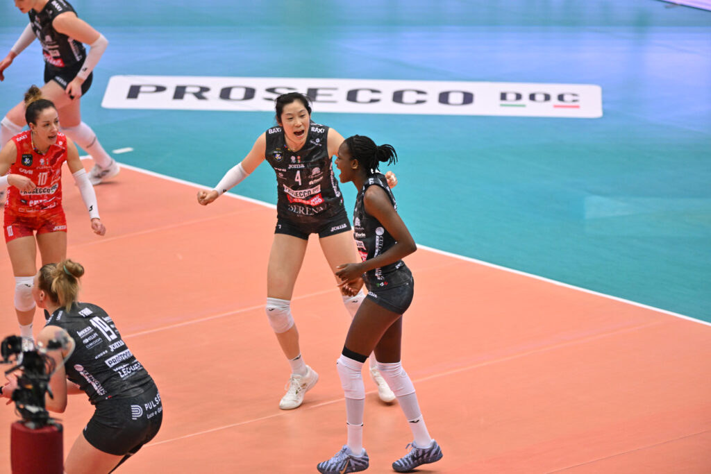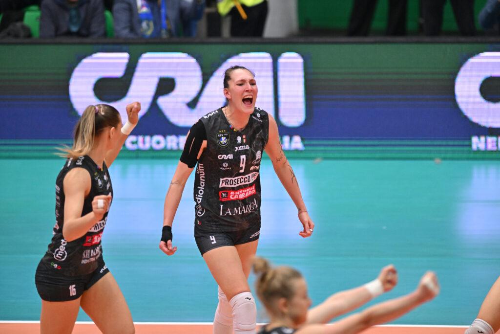 A. Carraro Prosecco DOC Conegliano: Gabi ne, Zhu 24, Scognamillo, Ewert 1, Lubian 4, De Gennaro, Haak 14, Munarini ne, Wolosz, Adigwe 11, Daalderop 4, Chirichella 8, Fahr 11, Sillah 8. All. Santarelli