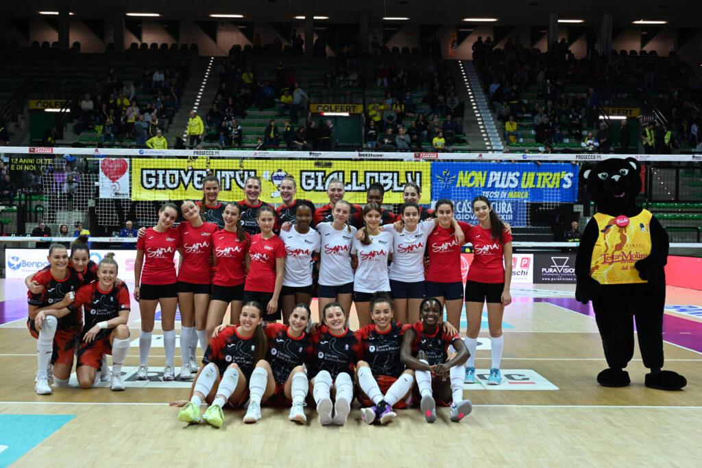 Nel quarto set coach Santarelli inserisce Fahr per dare più spessore al muro quando Busto è sopra nel punteggio (6-10), poi Sillah risveglia la prima linea gialloblù in un amen (9-10, sono 5 i punti della slovena nel parziale con 60% in attacco e due muri). La Prosecco DOC decolla (13-11), Gabi rimpolpa la seconda linea, Ewert e Haak tornano sul taraflex quando regna l’equilibrio (16-16). Wolosz pesca l’ace (20-19), poi alza due primi tempi per Fahr (22-20). Non basteranno due punti di Adigwe, per il 25-27 definitivo ci pensa Obossa con l’ace.