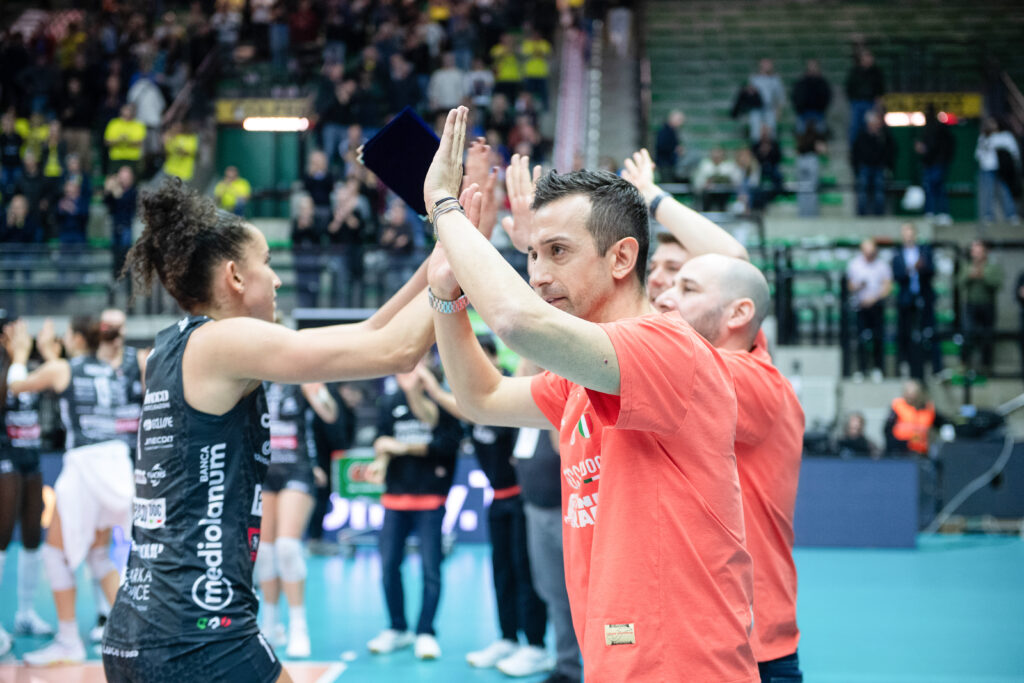 Lubian è protagonista in avvio di terzo set con 3 punti di fila, con un muro in mezzo (4-7), Haak imita la centrale per l’8-13, così come Gabi per il 12-20. Zhu è esagerata (14-22, MVP grazie ai suoi 15 punti con 3 muri e il 57% in attacco), Wolosz sparecchia la tavola segnando di seconda e regalando il matchpoint alle Pantere. È un errore al servizio avversario a decretare il rotondo 17-25 che vale la vittoria.