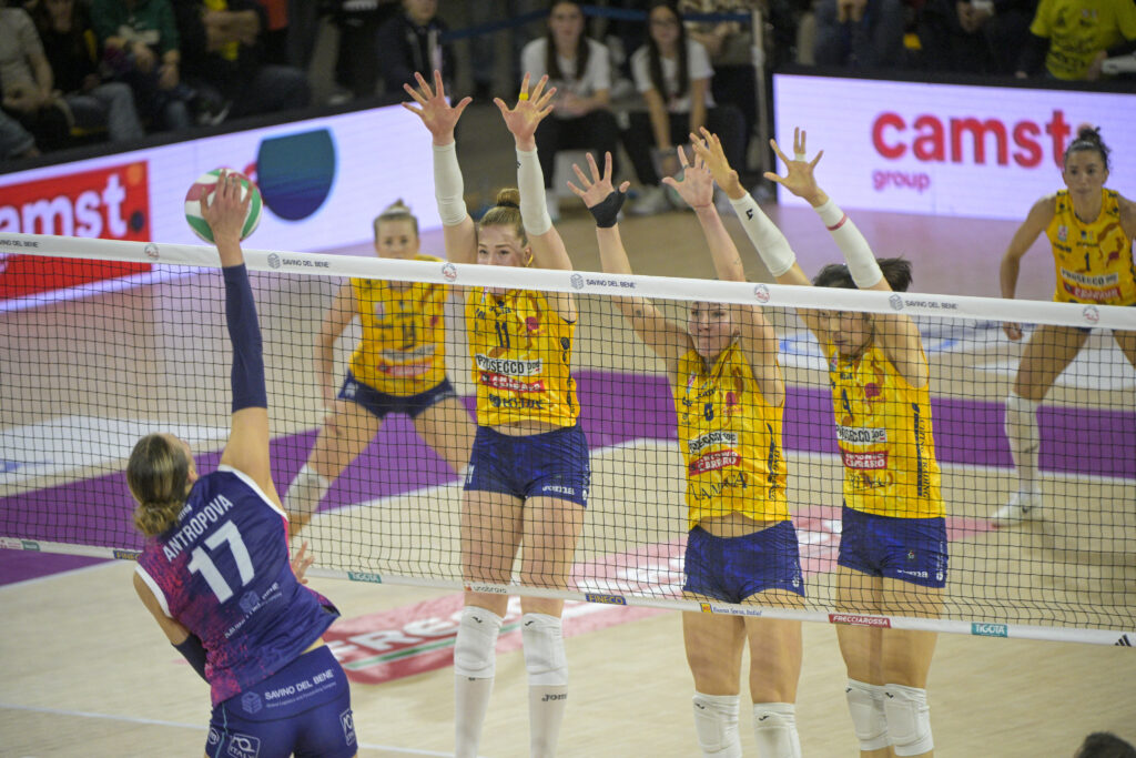 Prosecco DOC A. Carraro Imoco Conegliano: Gabi 11, Zhu 17, Scognamillo, Ewert ne, Lubian 6, De Gennaro, Haak 28, Munarini ne, Wolosz 3, Adigwe, Daalderop, Chirichella ne, Fahr 8, Sillah ne. All. Santarelli