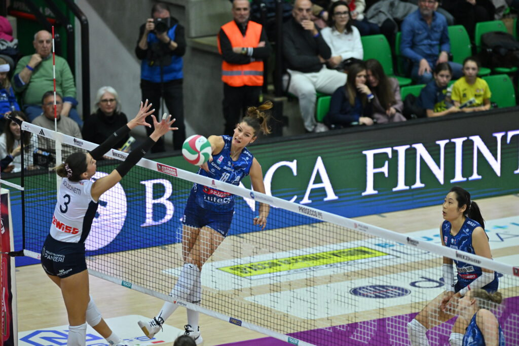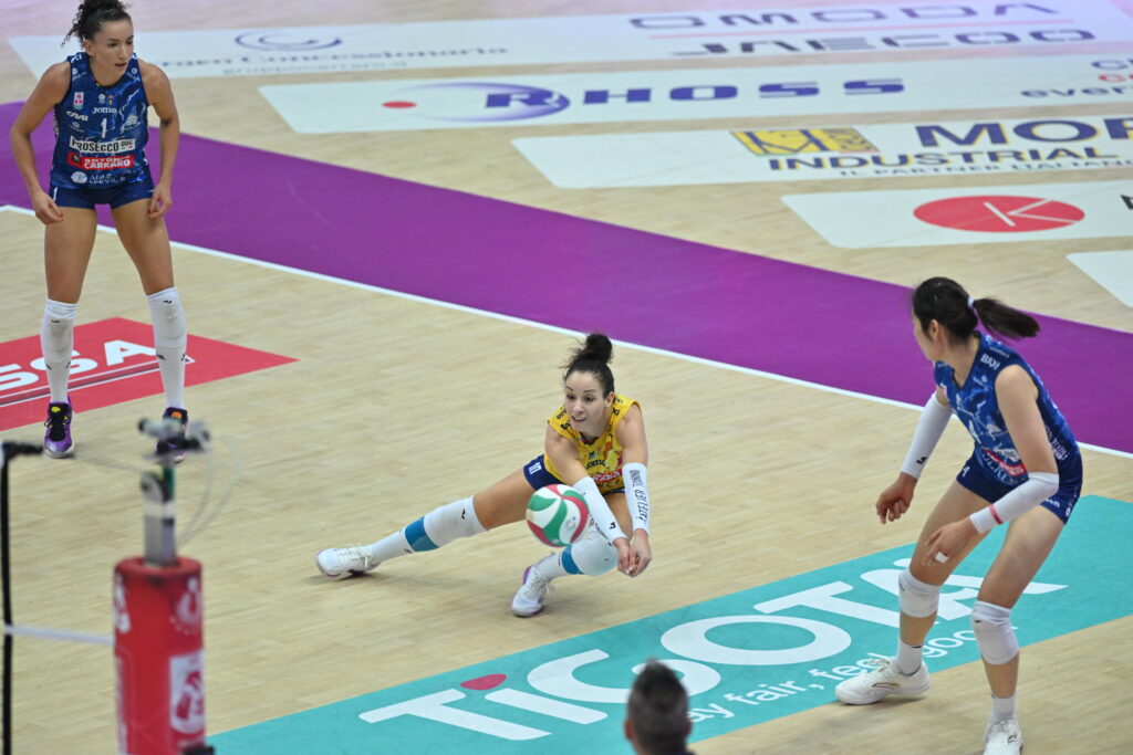 Sono le difese da capogiro di De Gennaro a regalare il primo margine significativo alle Pantere nel secondo set (8-4), si accende Fahr dopo il ritorno di Bergamo, brava a capitalizzare anche il primo tempo che porta al 20-15 (3 punti nel set per la centrale, finirà a quota 11 con il 71% in attacco). In mezzo sono i servizi di Zhu e Wolosz a scavare il solco, Haak torna con prepotenza quando conta (22-18), segnando anche il set point che riporta la parità (25-21).