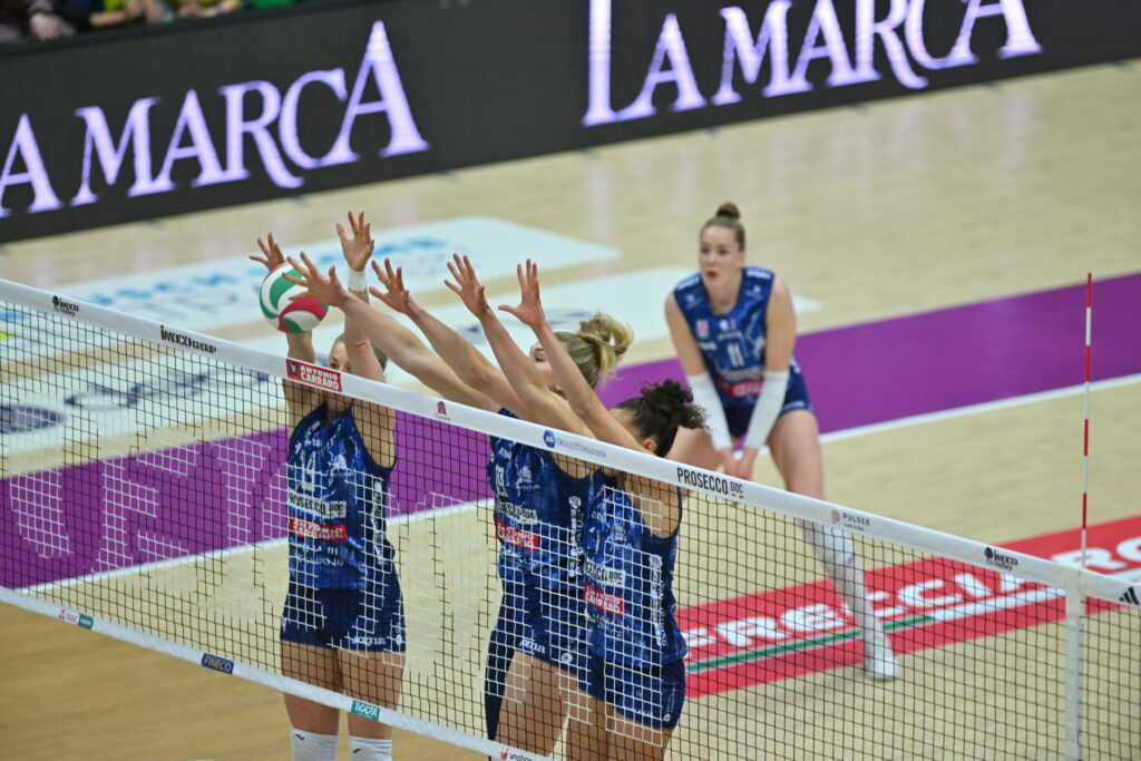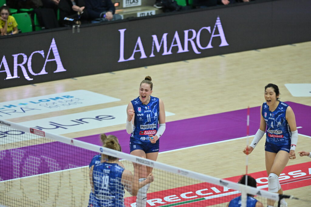 Prosecco DOC A. Carraro Imoco Conegliano: Gabi 15, Zhu 5, Scognamillo, Ewert ne, Lubian ne, De Gennaro, Haak 28, Munarini ne, Wolosz 3, Adigwe, Daalderop 5, Chirichella 10, Fahr 11, Sillah ne. All. Santarelli