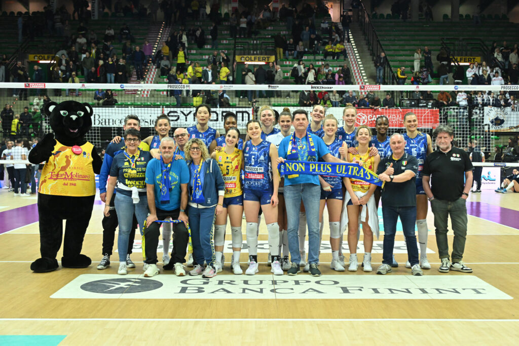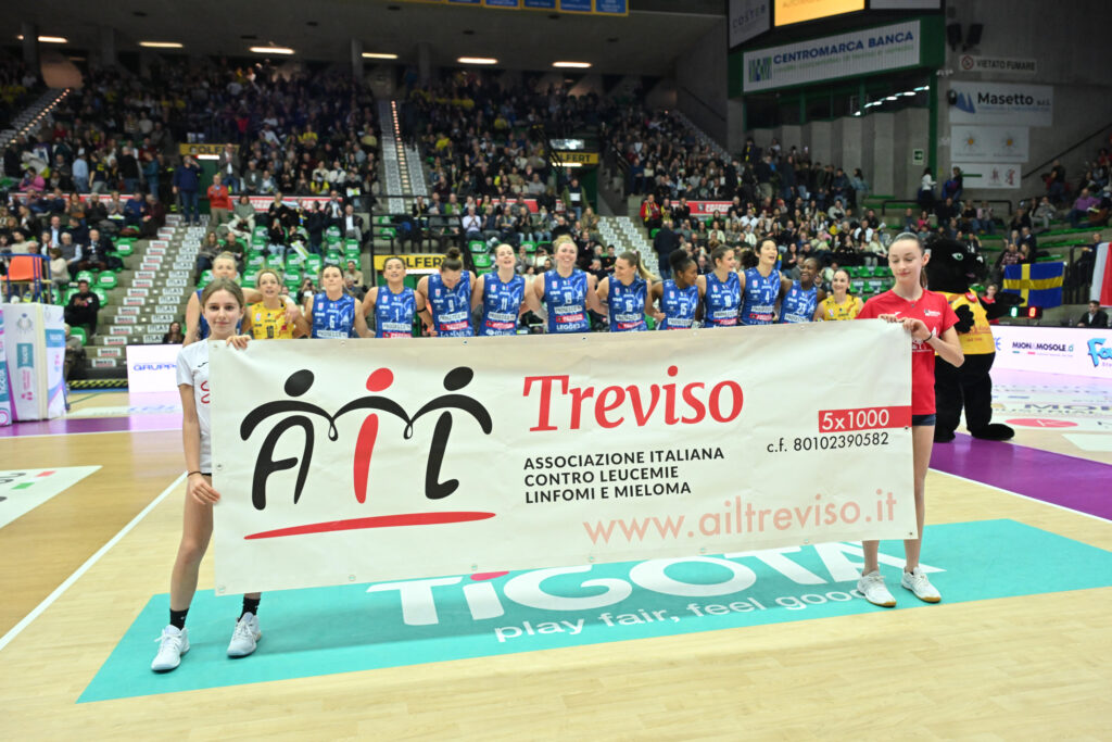 Serata speciale per Asia Wolosz: il capitano gialloblù colleziona la presenza numero 400 con la maglia della Prosecco DOC, seconda di sempre per gare disputate con Conegliano dietro Monica De Gennaro. La Prosecco DOC A. Carraro Imoco si schiera la fianco di AIL, Associazione Italiana per la lotta contro le Leucemie, i linfomi e il mieloma, sezione di Treviso.